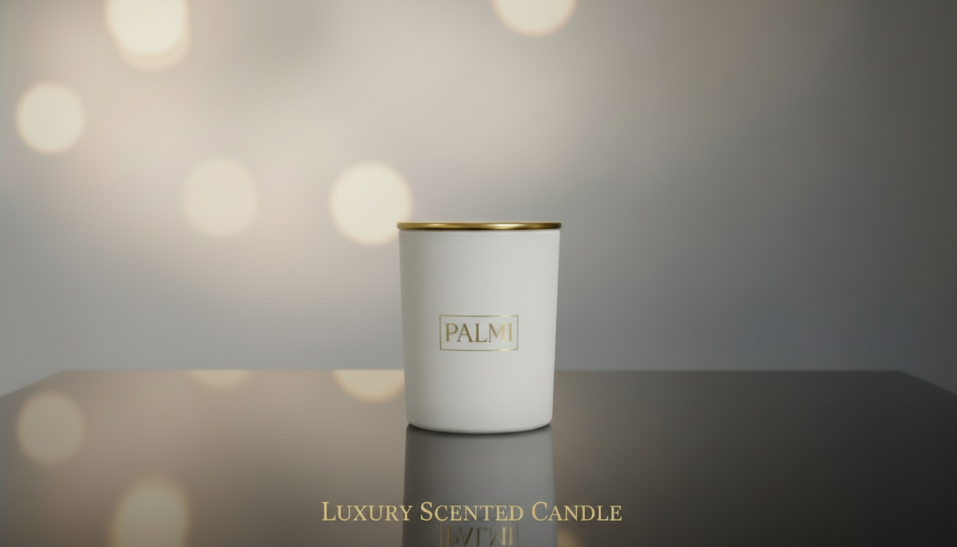 Jede Kerze wird aus natürlichem Sojawachs – 100 % vegan – handgegossen und in einem matten, weißen Glaszylinder gefertigt. Der Baumwolldocht sorgt für eine ruhige, gleichmäßige Flamme und ein sauberes Abbrennen. Das goldene PALMI Logo setzt einen eleganten Premium-Akzent – minimalistisch, klar und unverkennbar.